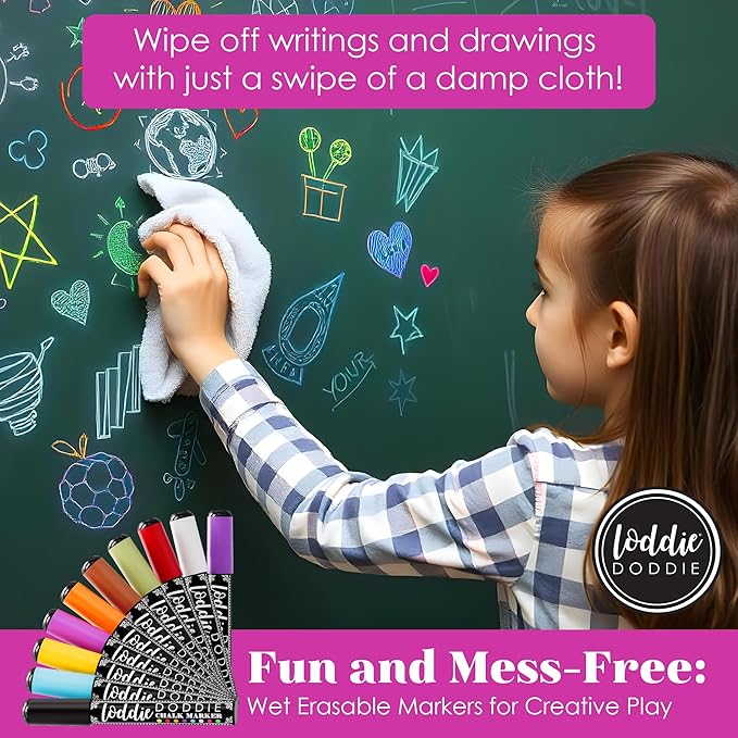 - All Occasion Flair: Whether you're sprucing up wedding decor or making your weekly chalkboard calendar pop, Loddie Doddie liquid chalk board markers add style to grocery lists and holiday gift tags. These chalk markers for blackboard use are a must-have for any art project
