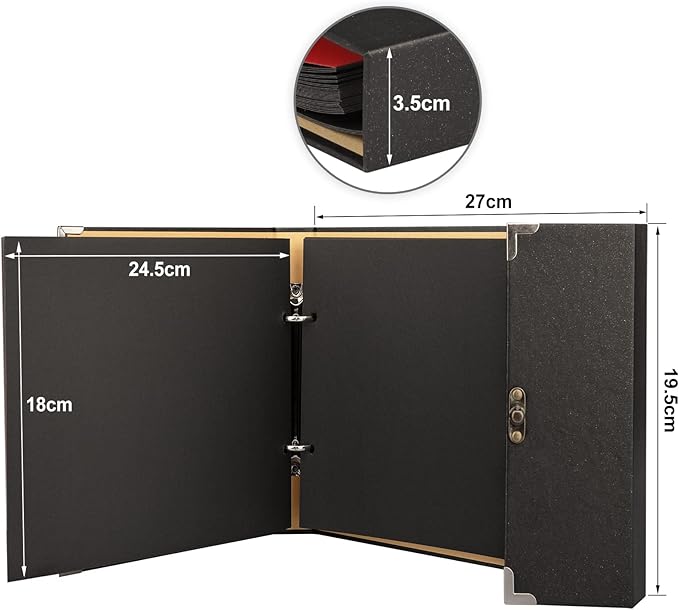 - 30 sheet (60 page) 10*7.0 inch black card inner page can holds more than 120 photos of 5*3.5inches. Refill design, make sure you can add or reduce pages freely