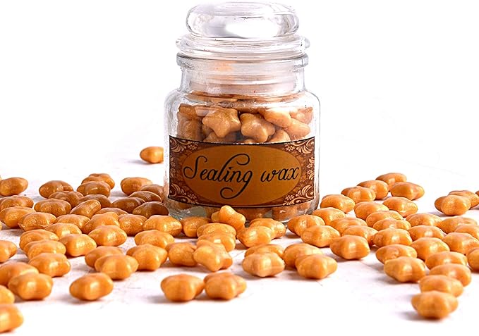 TELOSMA 100 Stars Shape Sealing Wax Beads - Big Wax Seal Beads in Glass Jar, Making Wax Seals for Wedding or Event Party Invitation, Thanks Card Envelope, Gift Wrapping - Glitter Yellow