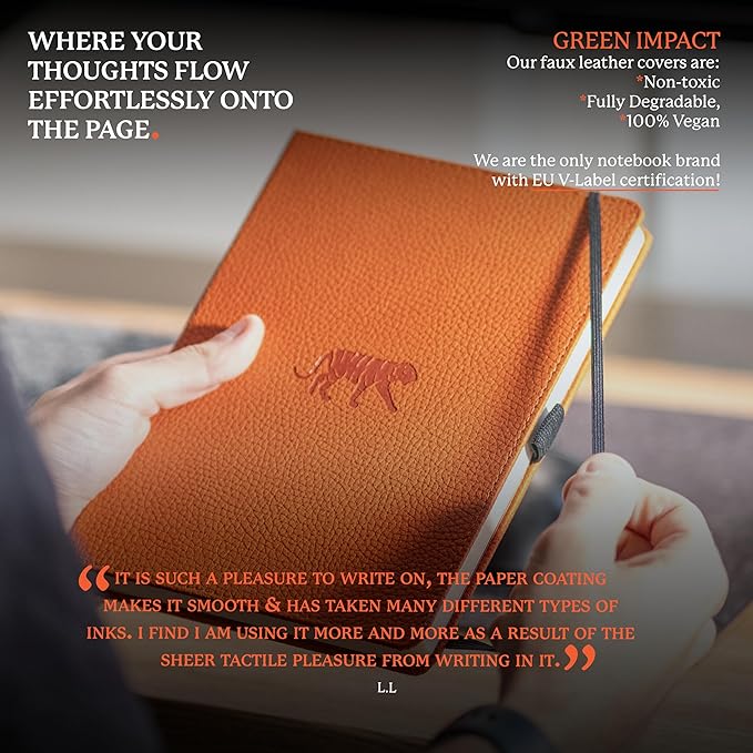 - SUSTAINABLY SOURCED, ENVIRONMENTALLY CONSCIOUS: Made from recyclable materials and FSC certified paper, our notebooks are Vegan Certified. Dingbats* Notebooks Ltd donates 2% of UK sales to WWF-UK, supporting environmental conservation.