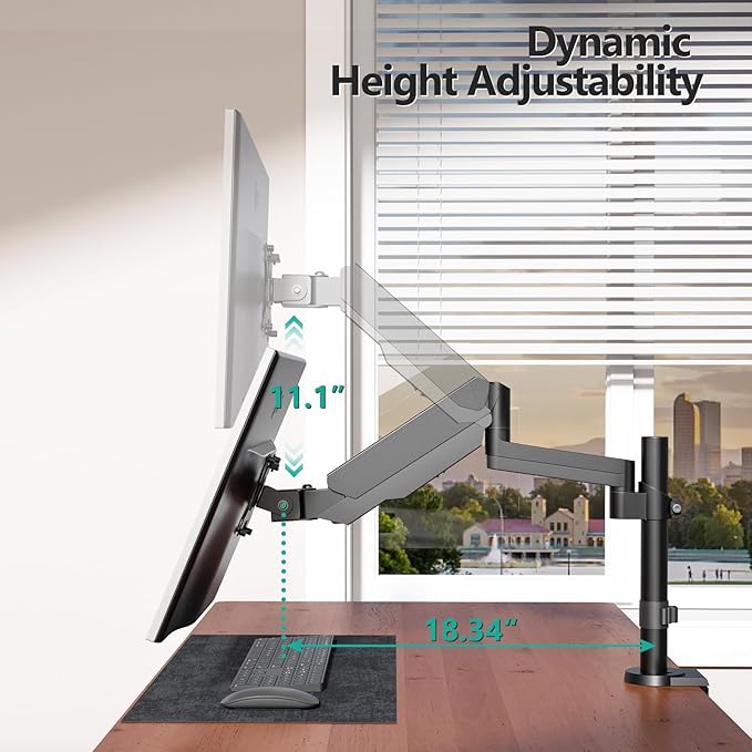 - Fully Adjustable: The Gas Spring Stand Can Tilt +70°/-45°, Swivel +/-180°, And Rotate 360°. Max Height Is Up To 23.6", And Max Extension Is Up To 20.3"