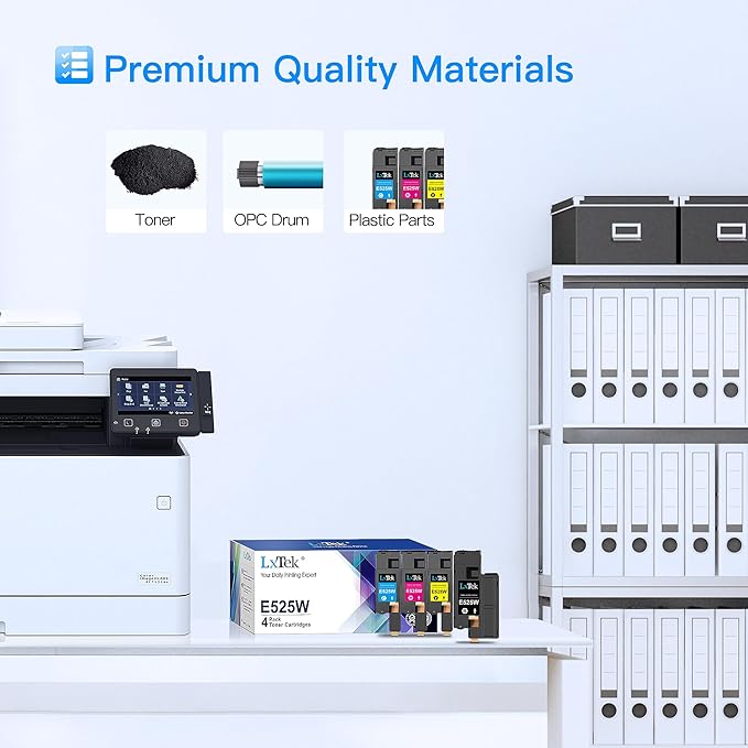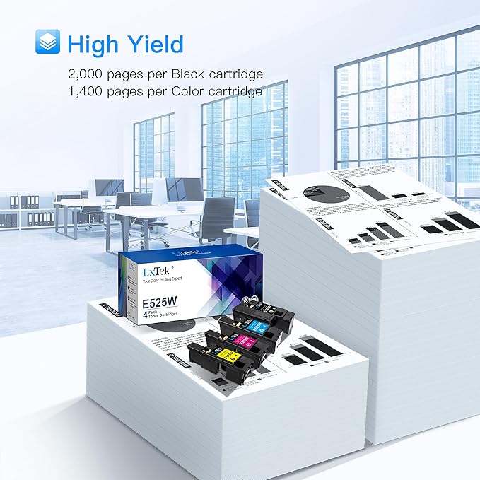 - Package Contents: 4 Pack (1 Black |1 Cyan |1 Magenta |1 Yellow) compatible for E525W toner cartridges
