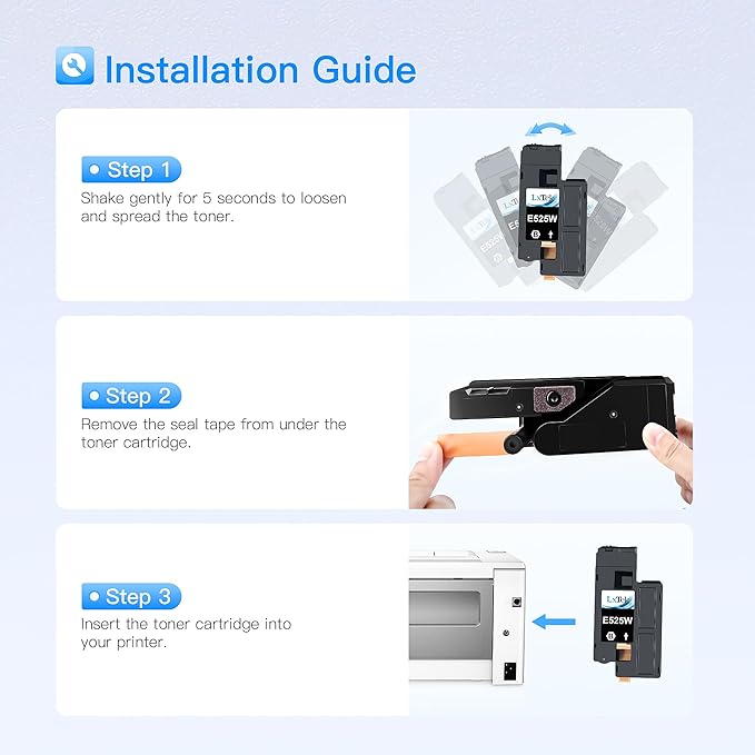 - All LxTek toner cartridges for Dell E525W are strictly tested with industry quality control process to ensure a no leakage using experience before delivery, remanufactured with ISO9001 & ISO14001 certified