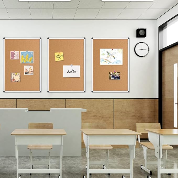 VIZ-PRO Cork Notice Board, 24 X 18 Inches, 3 Pack, Silver Aluminium Frame