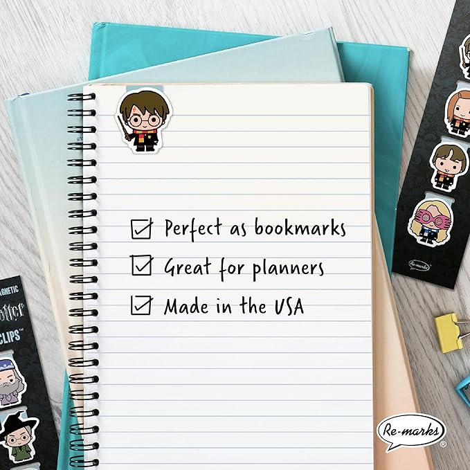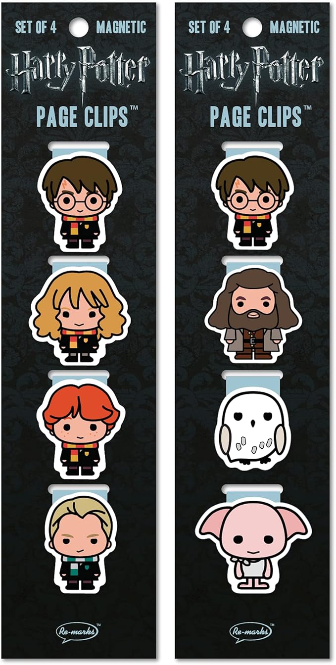 - FUNCTIONAL PAGE CLIPS: This set of 8 Harry Potter magnetic page clips includes some of your favorite characters. Enjoy securely marking your book pages, calendars, and planners with Harry, Ron, Hermione, Draco, Hagrid, Hedwig, and Dobby.