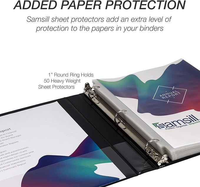 - Heavy-Duty 3-Ring Binders: Built to withstand frequent handling in classrooms, offices, and professional settings, these1-inch durable binders securely hold up to 200 sheets of standard 8.5" x 11" paper. The robust round-ring design provides smooth page turning with reinforced hinges for long-lasting reliability. Equipped with two clear interior pockets, they’re ideal for keeping important documents, project materials, or office essentials organized and secure