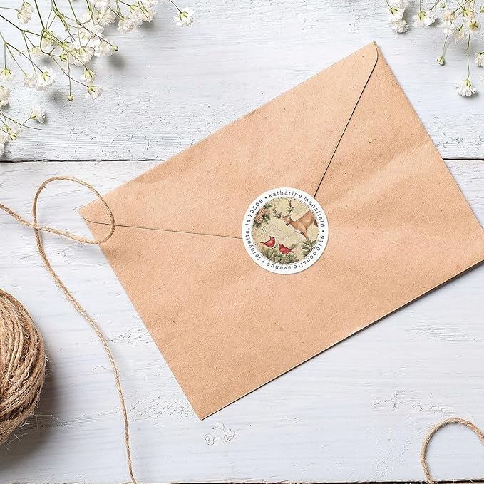 Woodland Deer Round Return Address Labels - Set of 144 1-1/2" Diameter Self-Adhesive, Flat-Sheet Labels