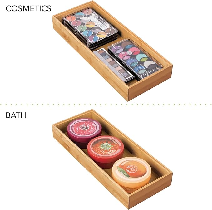 - FUNCTIONAL & VERSATILE: Perfect for many rooms in your home; Use in kitchen drawers to keep utensils, small appliances, flatware, napkins, and other supplies organized; Try it in your bathroom vanity drawers to keep cotton balls, makeup, lipstick, eye shadow, contour palettes, tweezers, and eyelash curlers neat and organized; Crafters will also find this handy for organizing crafting tools, jewelry findings and scrapbooking supplies