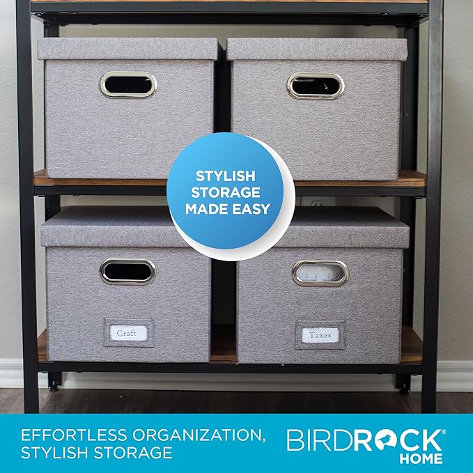 Internet's Best Collapsible File Storage Organizer with Lid - Decorative Linen Filing & Storage Office Box – Hanging Letter/Legal Folder – Home Office Bins Cabinet – Grey Container - 4 Pack