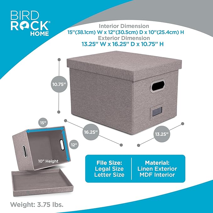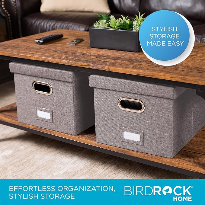 Internet's Best Collapsible File Box Storage Organizer with Lid - Decorative Linen Filing & Storage Office Boxes – Hanging Letter/Legal Folder – Home Office Bins Cabinet – Grey Container - 1 Pack