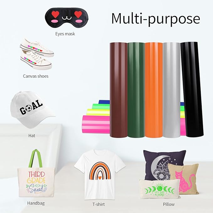 - 👕WIDELY USE: Suitable for cotton, polyester, rayon and cotton/polyester blended fabrics. Heat transfer vinyl is very useful for designing your own unique t-shirts, dresses, handbags, sweatshirts, aprons, hoodies, jeans, backpacks, pillows, and more. And anything else that can withstand the temperature being applied.