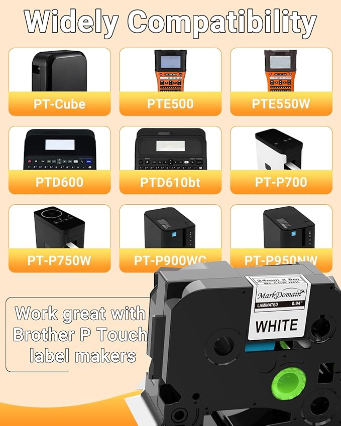- Standard Laminated TZe251 Tape - MarkDomain P Touch 1 Inch tape compatible brother label maker tape 24mm TZe label tapes are withstand temperature, withstand water, withstand fade
