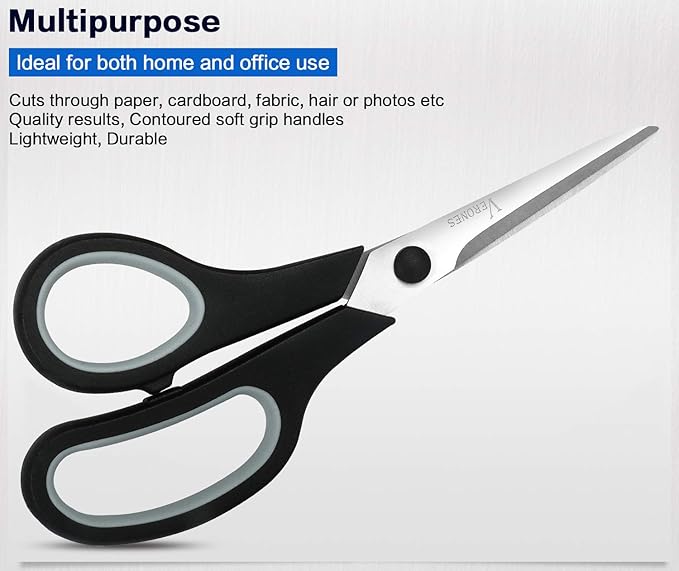 - ✮SUITABLE SIZE:VERONES scissors offer large loop handles that fit any-size hand, and works well for both left- and right-handed users