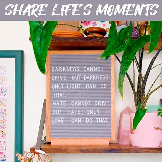 Felt Like Sharing Letter Board (Gray Felt - 16”x20”) – Changeable Message Board with 3 Sets of Felt Board Letters – Statement Wall Sign for Quotes, Home or Holiday Decor In Oak Frame