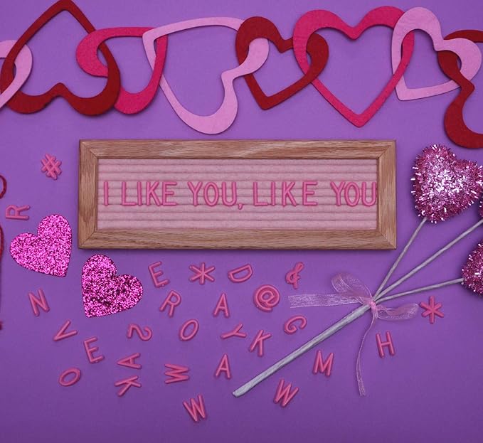 Felt Like Sharing Small Letter Board (Light Pink Felt - 10”x3.5”) – Changeable Message Board with 3 Sets of Felt Board Letters – Statement Wall Sign for Quotes, Home or Holiday Decor In Oak Frame