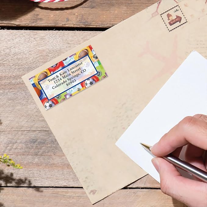 Sports Balls Border Personalized Return Address Labels- Set of 144 1-1/8" x 2-1/4" Self-Adhesive, Flat-Sheet Labels, by Colorful Images