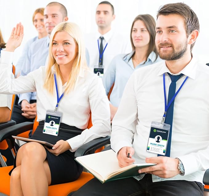 - Each neck lanyard with firm steel swivel hook is lightweight and easy to connect, can 360 degree rotating, secure your employees or guests with these THICK nametags and lanyards that fit most ID and credit cards