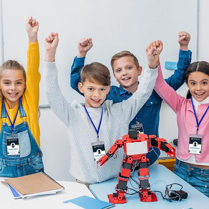 Fushing 50pcs Clear Plastic Vertical Name Tags Badge ID Card Holders and Blue Neck Lanyards with Swivel Hook for School, Festival, Event (L)