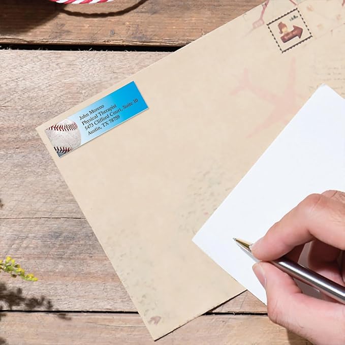 Baseball Small Return Address Labels - Set of 240 2" x 5/8" Self-Adhesive, Flat-Sheet Labels