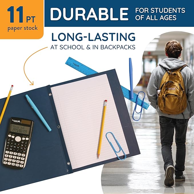 Blue Summit Supplies 100 Paper Two Pocket Folders with Prongs, 2 Pocket Folders Bulk 100 Pack, Assorted 5 Colors, 3 Prongs for Letter Size Paper, Designed for Office and Classroom