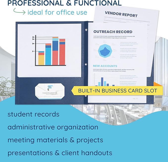 - Easily slide letter size 8.5 x 11 sheets in and out of the standard 2 pocket folder design