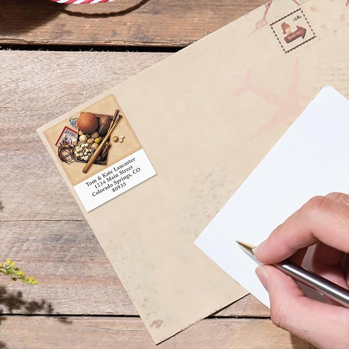- Add a touch of personality to all of your stationeryand cards with these Personalized Address Labels with a unique nostaligic sports balls and equipment image.