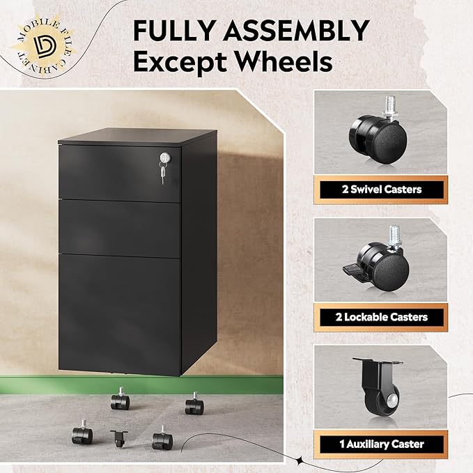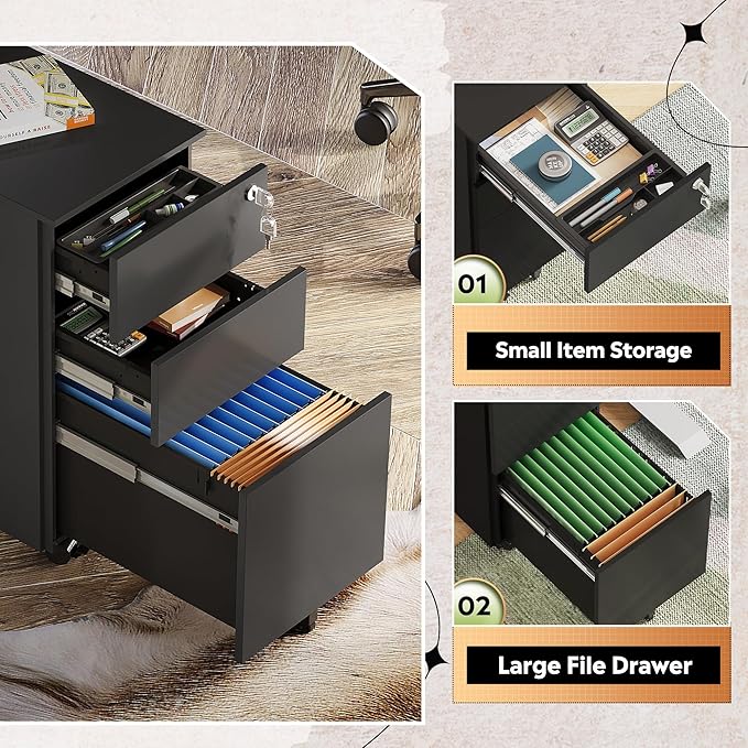 - BUILT-IN LOCK: The pedestal cabinet with a built-in lock that secures all 3 drawers, keeping your personal documents, important receipts safe and organized. Perfect for office, workplace, home to keep your everyday files close and easy to find.