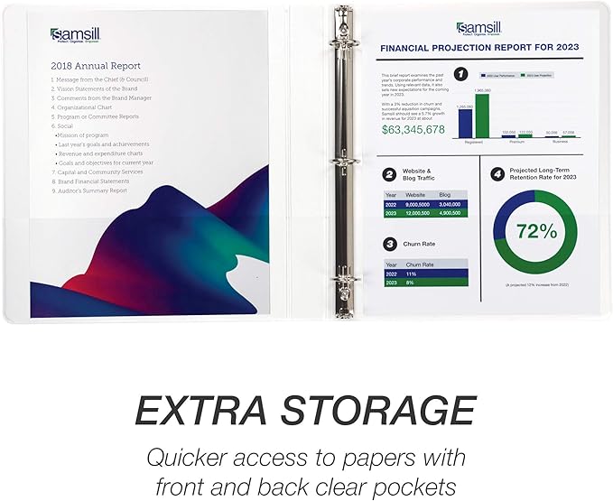 - Professional Look: Designed to impress during presentations and look great on a shelf, our 3 ring binder features back-lid-mounted round binder rings for a rivetless spine