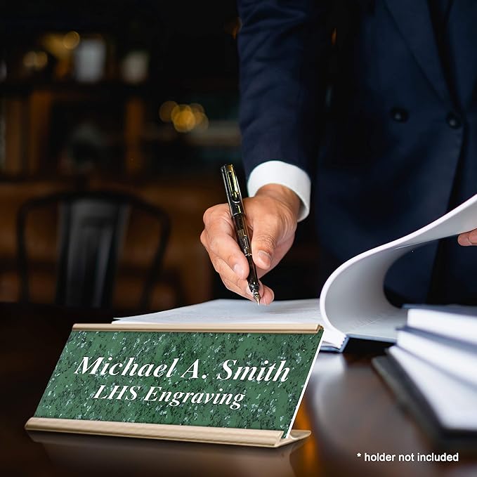 Engraved Name Plates for Door Sign Personalized Green Marble Plastic Plaque with White Letters - Made in USA 2x10 S4