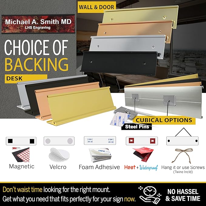 - π‘ Click Personalize: Add 3 lines of text | Option to add a desk, wall or a door holder or choose adhesive, hanging, cubicle pins, or all weather adhesive option