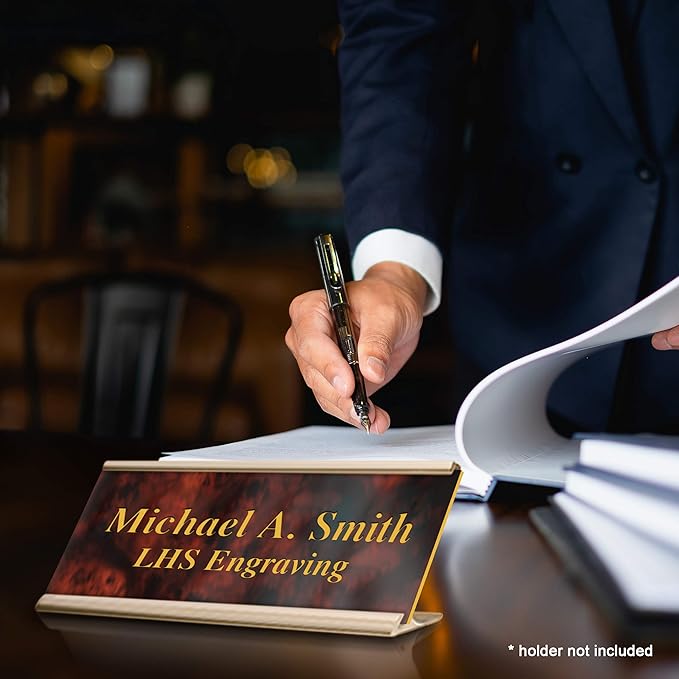 Engraved Name Plates for Door Sign Personalized Burlwood Plastic Plaque with Gold Letters - Made in USA 2x10 N2