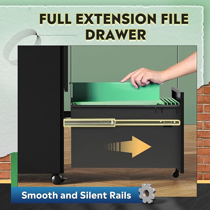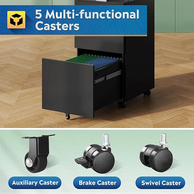 - 【Easy Mobility with 5 Casters】- Features 2 locking casters for stability and 3 swivel casters for smooth 360° movement on carpets & hard floors. The central caster prevents tipping. A truly mobile file cabinet.