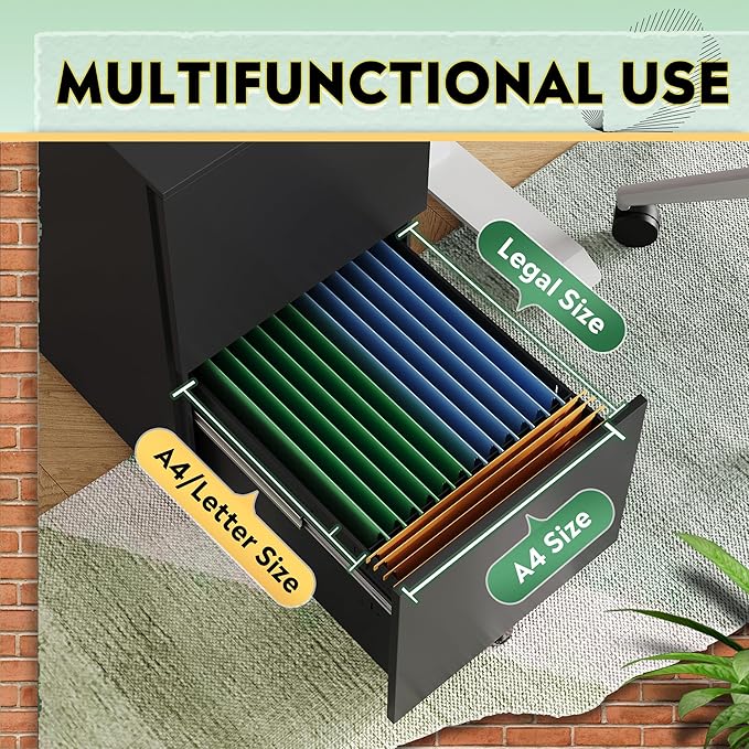 - 【2-Drawer Metal File Cabinet】- Adjustable rods hold Letter/Legal/A4 files. Smooth, full-extension slides allow easy access. Doubles as a sturdy printer stand or under desk storage cabinet for your home office.