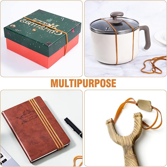 - Wide Application: This set of elastic wrapping bands can not only be used to hold the garbage bag firmly on the trash can (Circumference less than 35in), but also can be used to pack documents, books, notebooks and cartons, or to tie up lunch boxes and tools. These rubber bands can be used in a variety of places such as homes, offices, warehouses, outdoors, and more. Use your imagination, they can make your life more convenient.