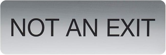 - Includes: One 'Not an Exit' sign in silver with adhesive mounting strips on back.