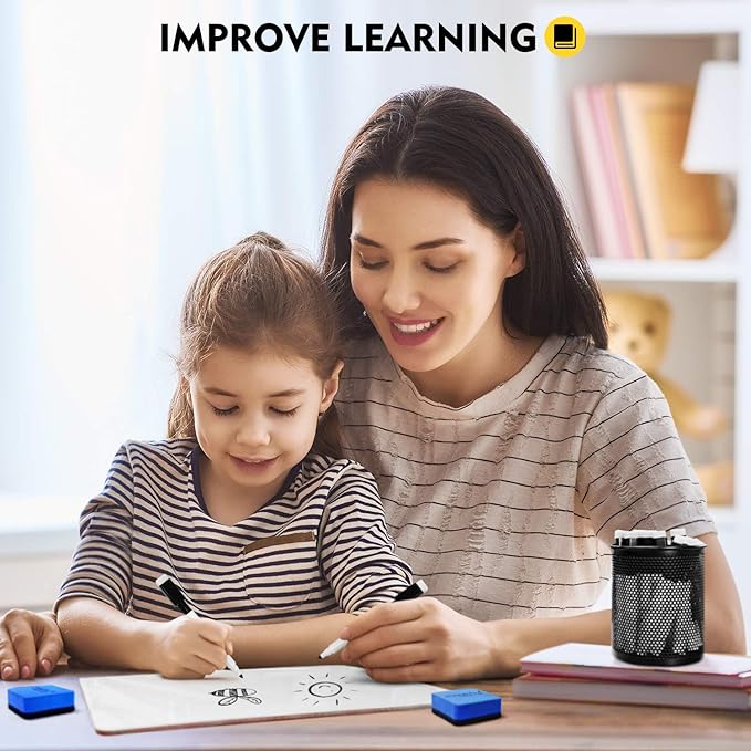 - 【EASY TO CLEAN】 You can wipe the dry erase boards clean with the included erasers quickily without smudging your hands or clothes, and no other tools are needed.