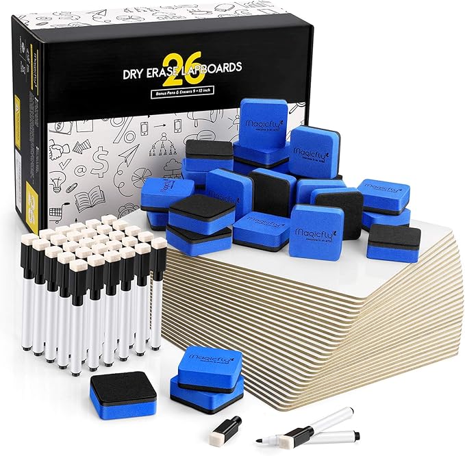 - 【Product Suite Included】 The product whiteboards for students package contains the stationery you need, including: 26 x 9" * 12" Dry Erase Lapboard, 32 x Dry Erase Markers, 26 x Eraser. Conforms to ASTM D–4236