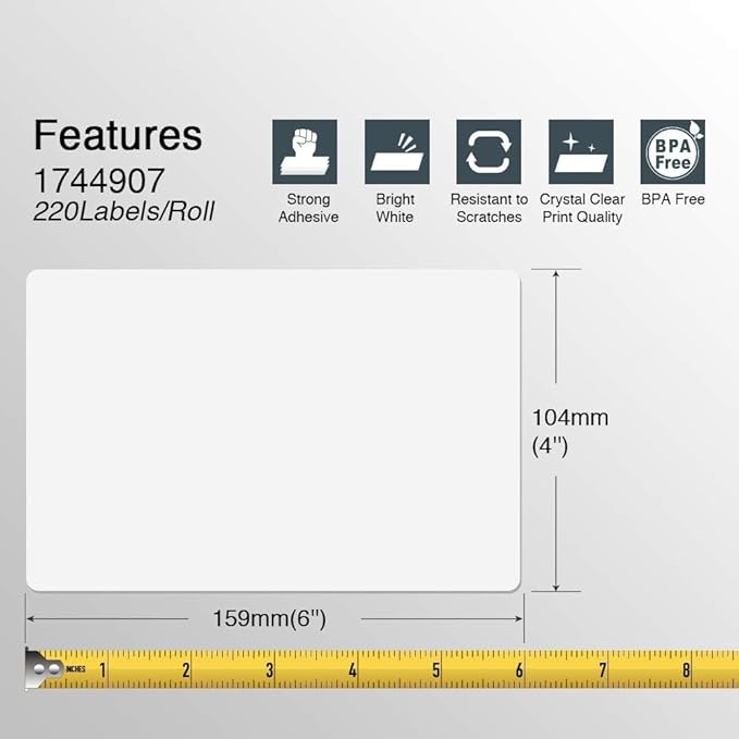 ![BETCKEY - Compatible DYMO 1744907 4x6 Shipping Labels, Perforated, Compatible with DYMO Labelwriter 4XL Rollo & Zebra, NOT Fit 5XL [12 Rolls/2640 Labels]](http://linesday.com/cdn/shop/files/51mi1zVFFrL._AC_SX679.jpg?v=1759573793&width=1445)