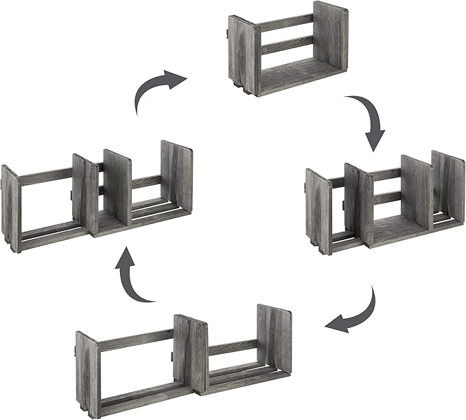 MyGift Barnwood Gray Wood Desktop Bookshelf Organizer, Expandable Adjustable Display Shelf Book Rack