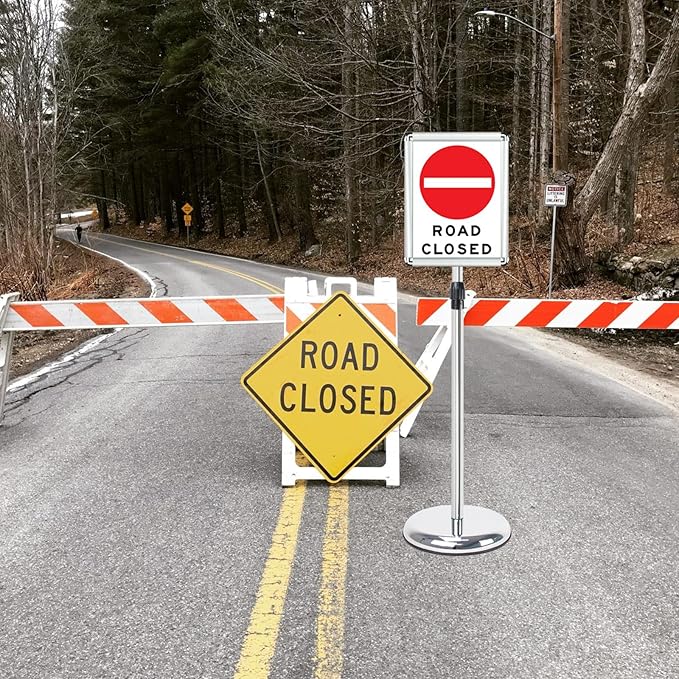 - ➽Sturdy & Stable: The material of the poster frame is aluminum and the material of the stand pole is stainless steel. Besides, you can add water and sand into the rubber base to increase stability.