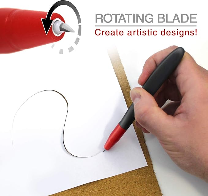 - Swiveling blade rotates a full 360 degrees for intricate and detailed cuts.