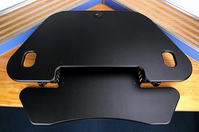 - ERGONOMIC KEYBOARD TRAY: The 4.5" spacing between keyboard tray and desktop helps keep arms and wrists in an ergonomic position to prevent neck and back strain while sitting or standing.