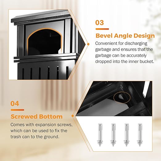 • WINDPROOF - BEAMNOVA commercial outdoor trash can is manufactured with commercial-grade metal with a powder-coat finish, BEAMNOVA heavy duty waste container performs well in both outdoor and indoor conditions. Comes with expansion screws, which can be used to fix the trash can to the ground.