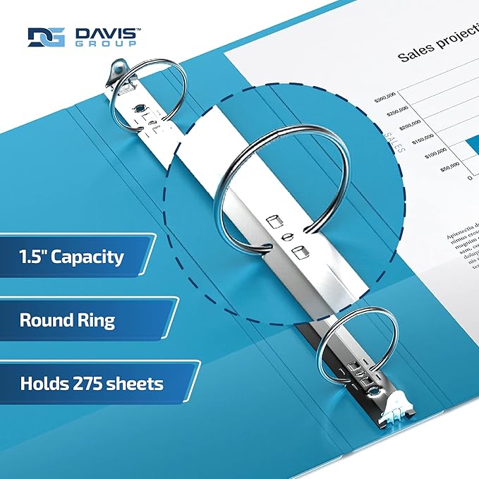 Premium Economy 6-Pack 3-Ring Binders for School or Office, Round-Ring Binders, 1.5 Inch, Turquoise