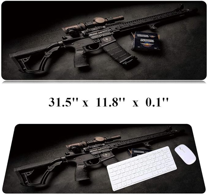 RTGGSEL 31.5x11.8 Inch Non-Slip Long Extended Large Gaming Mouse Pad with Stitched Edges XL Laptops Keyboard Mouse Mat (Black Gun)