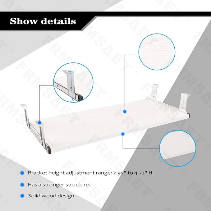 - HIGH QUALITY MATERIAL: Wooden keyboard drawer are not only sturdy but also stylish, suitable for a variety of applications. It is equipped with steel ball bearing slides for smooth sliding and reducing noise.It can be quickly and easily to set the keyboard tray to four heights and meet the different people's optimal height selection of the keyboard.Enhance comfort and reduce fatigue while typing.