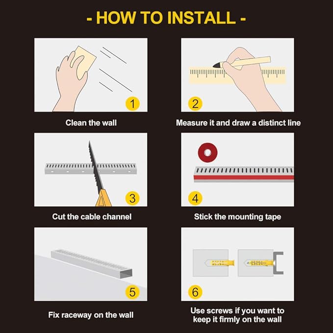- TWO QUICK INSTALLATION METHOD : Easy and simple to use. The wire raceway duct has multiple openings to let cables go in and out of the channel freely. Just stick the cord cover and put in on the wall or on the back of the desk. Then align the holes and slide the cover on. You can use the screws if you want to keep channel firmly on the wall.