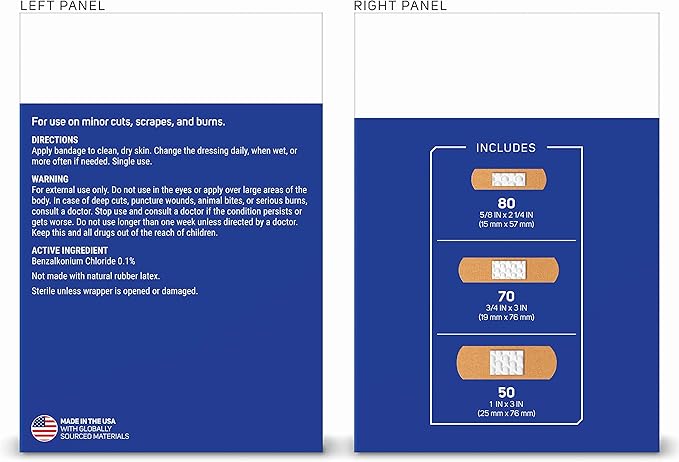 Care Science Fabric Adhesive Bandages, 200 ct Bulk Assorted Sizes | Flexible + Breathable Protection for First Aid and Wound Care