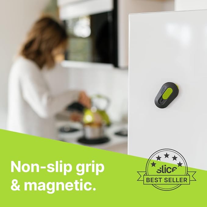 - DESIGNED FOR EASE: Slice's lightweight mini utility knife is excellent to take on-the-go, but is also sufficient for home use. Additionally, it is suitable for left and right hand users, has a reinforced handle for durability, and a built in magnet to keep it handy on the fridge.