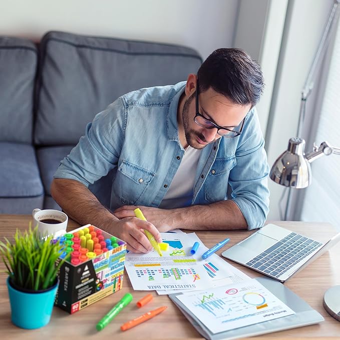 - Fluorescent Markers: Emphasize useful info with one of the 6 neon colors in your pack of 60 Arteza bulk highlighter markers, such as yellow, blue, pink, purple, green and orange.